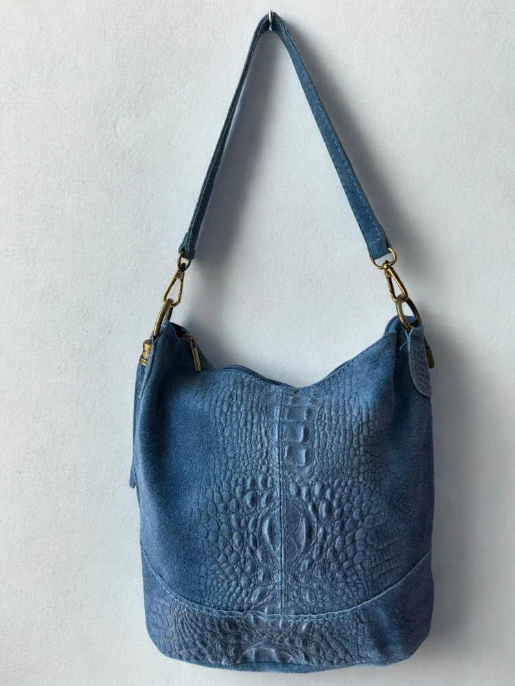 Krásna modrá kožená crossbody kabelka na plece s krokodílím vzorom Grosso 25x25x15
