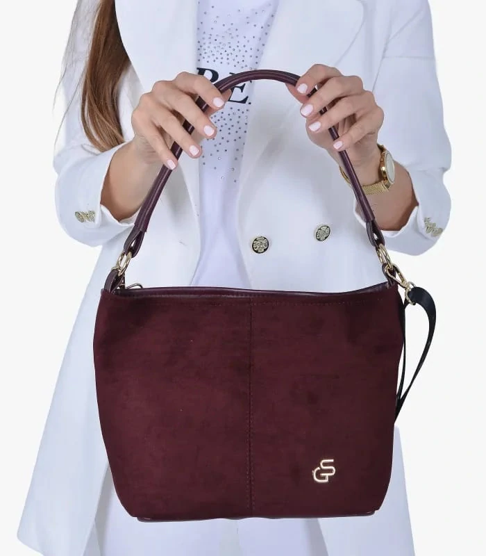 Stredná mäkká bordová crossbody kabelka s rúčkou na plece Grosso 34x24x12